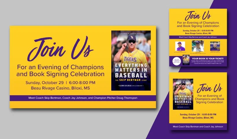 OWA is proud to support Louisiana State University and its affiliated organizations to support a range of high-impact events and initiatives through print and digital advertising, public relations, and photography services. Our work includes event collateral for the LSU First Pitch Baseball Banquet and Women’s Basketball Banquet, PR support for Everything Matters in Baseball: The Skip Bertman Story, and program development for Ole War Skule events including LSU Salutes and the Hall of Honor.